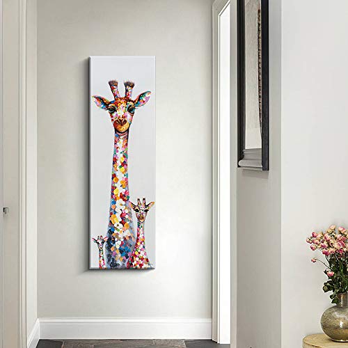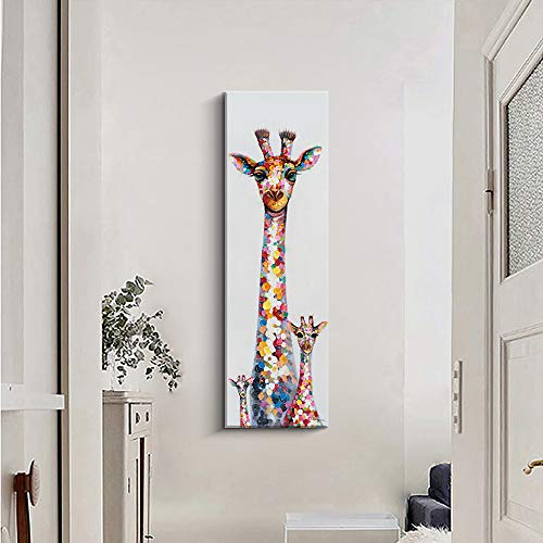 Pigort - Pigort Giraffe Painting Wall Art - Curious Colourful Giraffe Mother and Her Children - Cute Animal Canvas Art for Kid's Room, Modern Home Wall Decor (L)
