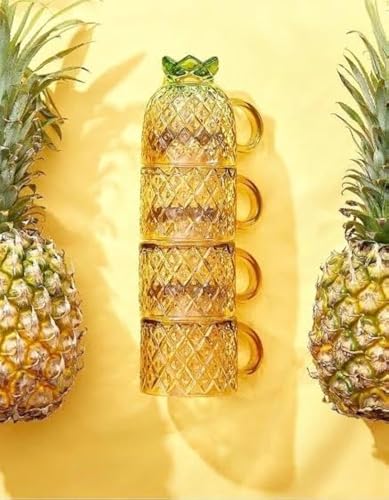 Generic - Pineapple Glass Tumbler, Set of 4 Stackable Drinking Glasses for Latte Macchiato, Tea, Water, Juice & decor كوب زجاجي على شكل أناناس، مجموعة من 4 أكواب شرب لللاتيه ماكياتو والماء والعصير والديكور