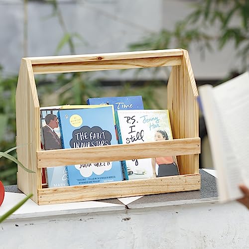 PineStation - Rustic Natural Wood Book Stand Shelf for Table and Home Decor | 1-Shelf, Classic Style, Book Shelf, Shelf, Bookshelf