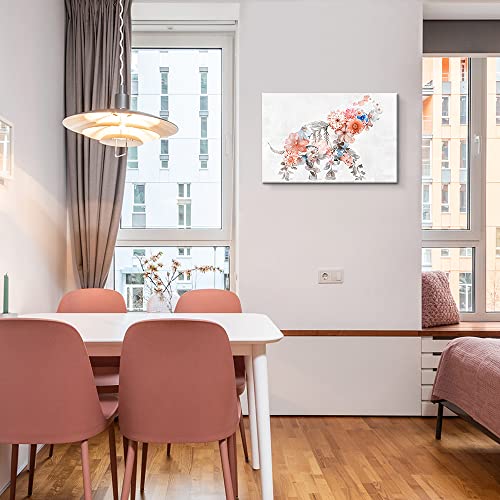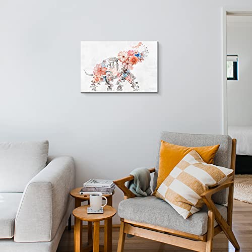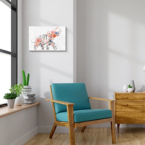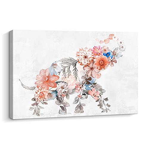 Pinetree Art - Pinetree Art Elephant Wall Decor Funny Original Floral Design Abstract Elephant Canvas Painting Artwork For Living Room Bedroom Decoration 12" x 16" Frame Ready to Hang (12" x 16")