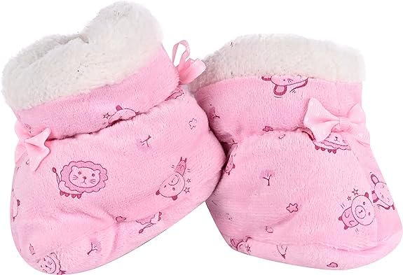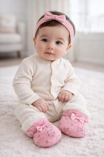 Generic - جوارب تدفئة للأطفال باللون الوردي مع فرو، شراب تدفئة مبطن بطبعات حيوانات مع فيونكة