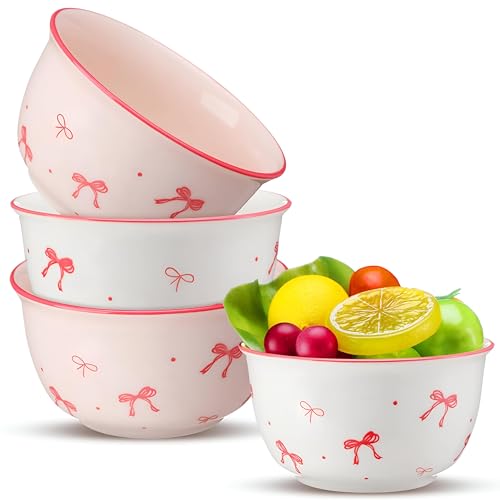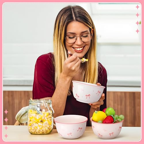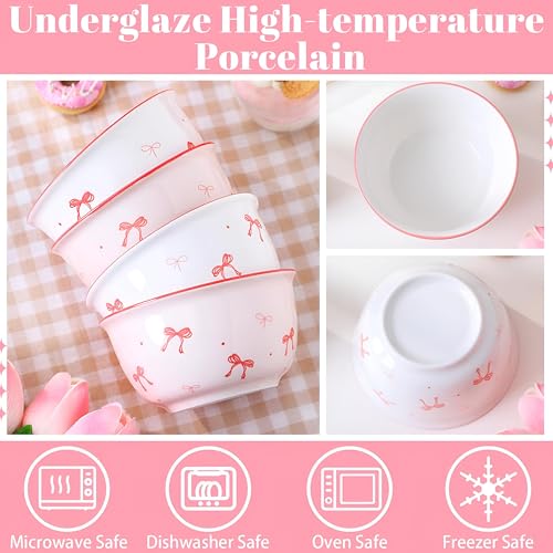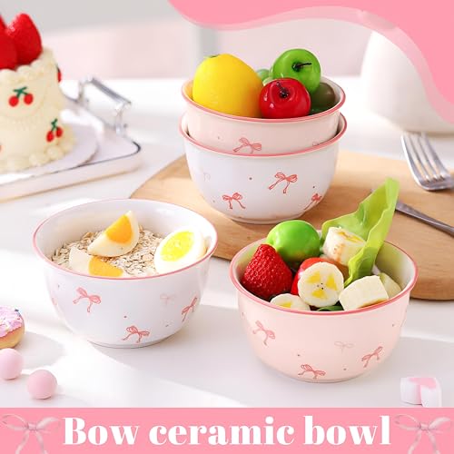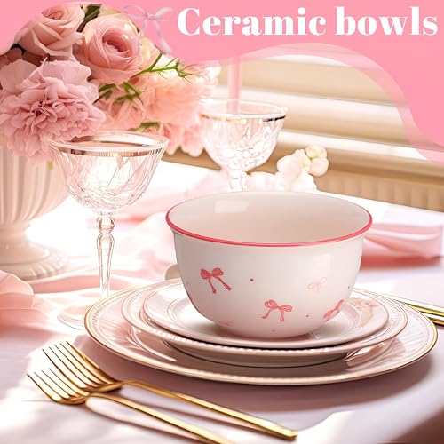 Generic - Pink Bow Ceramic Bowls Set - Adorable 6-piece 10oz coquette bowls perfect for soup, dessert, pudding, or fruit salad, adding a preppy pink and white charm to any kitchen decor.