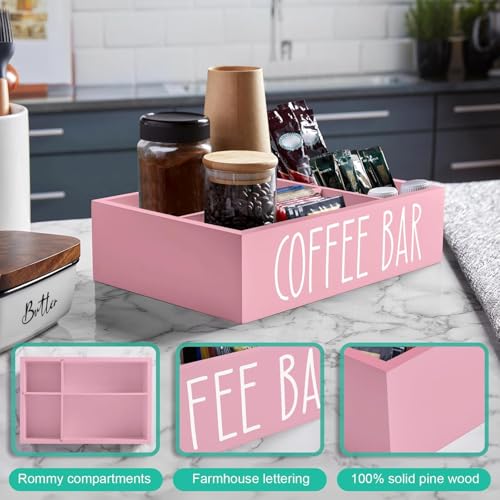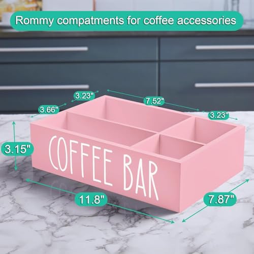 Generic - Pink Coffee Station Organizer with Removable Dividers - Wood Coffee Bar Pod Holder Storage Basket for K Cup Sugar Tea - Pink Coffee Bar Decor