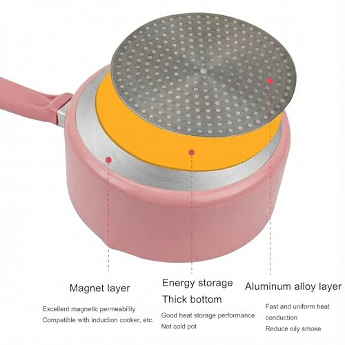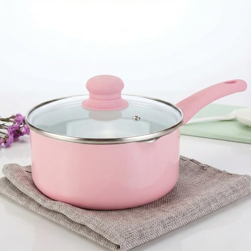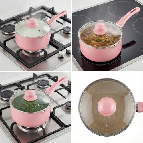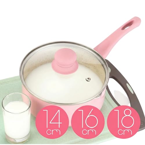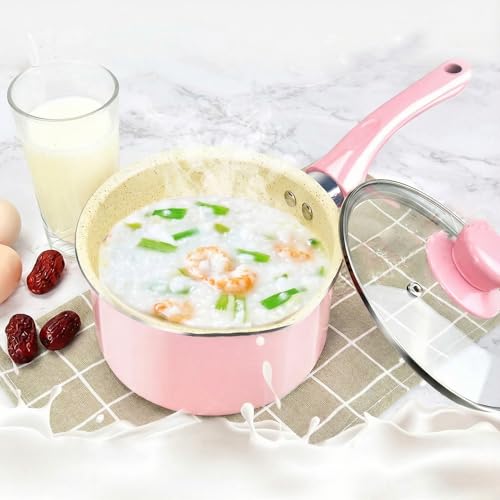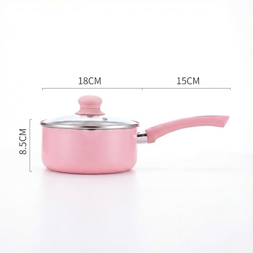 Generic - لبانة وكسرولة جرانيت بينك غير لاصقة بغطاء زجاج - حلة صغيرة لعمل البن وسلق البيض وتحضير الطعام- قاعدة توزيع حراري لكل البوتاجازات (18 CM)