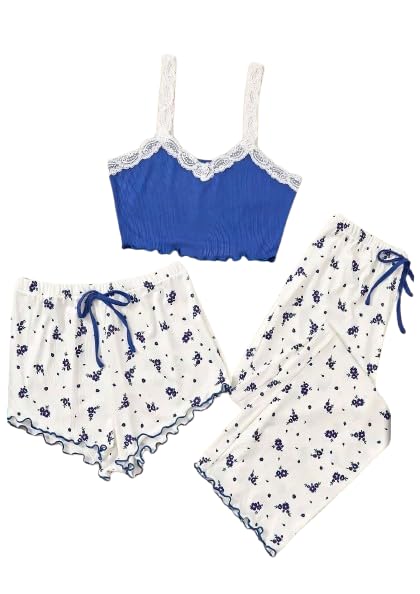 Generic - بيجامة زهرى مكونة من 3 قطع للنساء توب وشورت وبنطلون