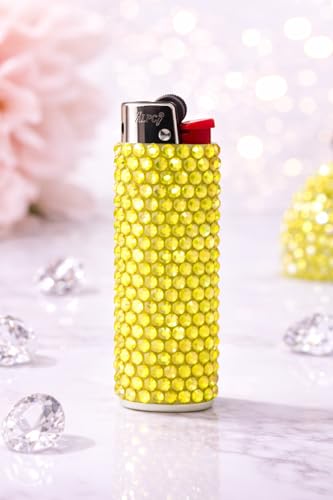 Generic - ولاعة كريستال للجيب بتصميم براق، قابلة لإعادة الملء، مع أحجار متلألئة بألوان متنوعة، لون ذهبي (Citrus Gold)