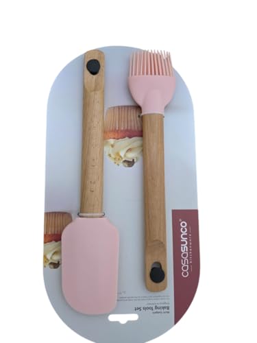 Generic - أدوات خبز من السيليكون، ملعقة سباتولا مقاومة للحرارة غير لاصقة وفرشاة معجنات بمقابض خشبية، لون وردي، قطعتين