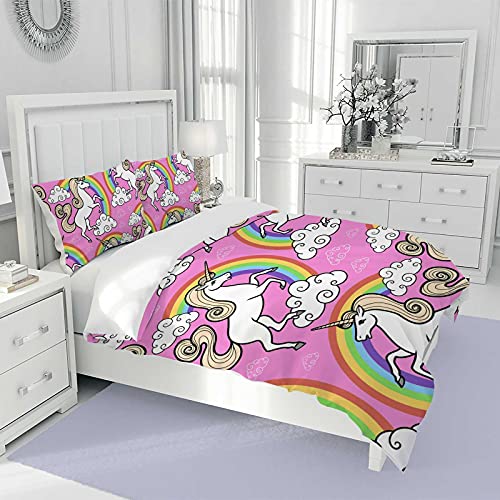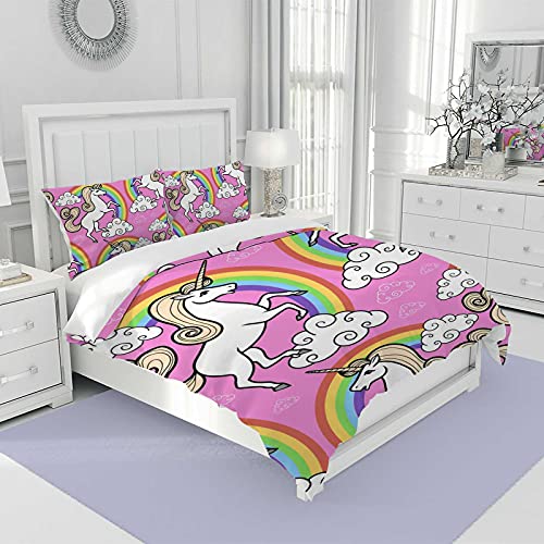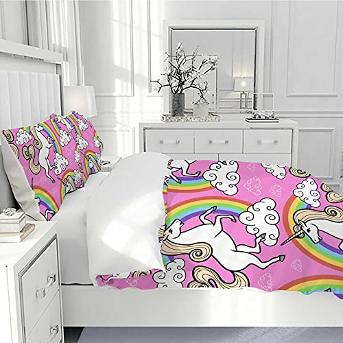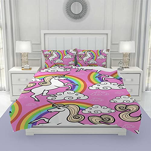 Generic - Pink Unicorn with Rainbow and Clouds Duvet Cover Full Size Duvet Cover Queen Size 3 Piece Cover Unicorn Cover Set King Size Duvet Cover with Zipper(1 Quilt Cover + 2 Pillowcases)