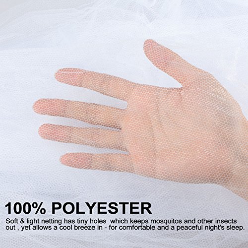 - ※Generous Sizing --- our luxurious king size mosquito mesh net fits all beds from single, double to king. our soft and light fabric netting has tiny holes(256 holes per square inch) which keeps mosquitos and other insects out, yet allows a cool breeze in - for comfortable, natural protection and a peaceful night's sleep.