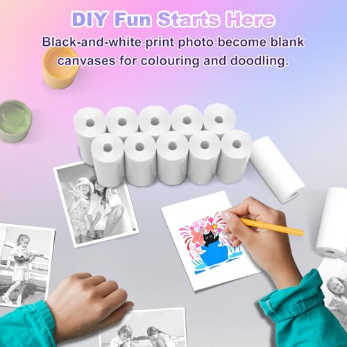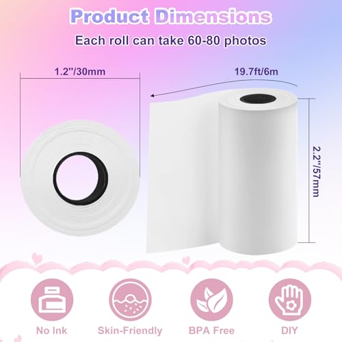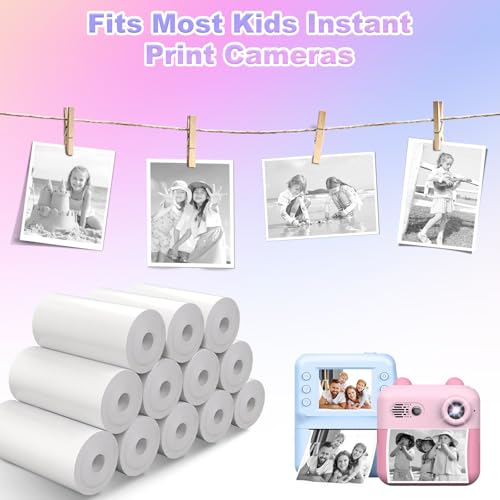 - 【Get 12 Rolls of Fun!】Includes 12 premium kid instant print camera paper rolls (57x30mm), printing up to 60–80 photos each — perfect for long-term use. A must-have printer refill paper for your kids instant print camera.