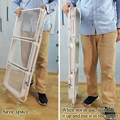 - 【تصميم قابل للطي】- هذا الترولي جاهز للاستخدام الفوري ويتميز بتصميم قابل للطي، فهو يتجاوز عملية التجميع المعقدة. تحتاج فقط إلى فتح الجزء المطوي لتركيب 4 عجلات ثم استخدامه. لا داعي للقلق بشأن التعليمات الصعبة فهو موفر للمساحة عند عدم استخدامه.
