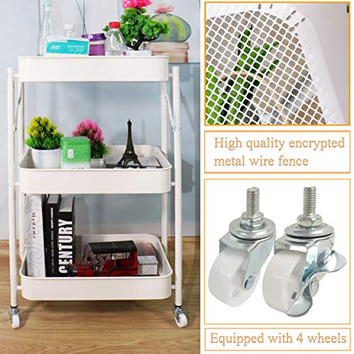 Piowio - ترولي بعجلات معدنية دوارة من 3 طبقات، تربو بأرفف تخزين متعددة الوظائف للمنزل والمطبخ والحمام وغرفة الغسيل والمكتب والمتجر من بيويو (أبيض).