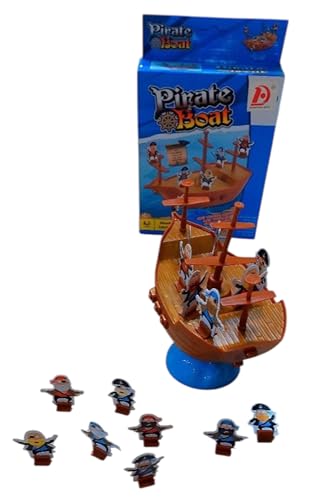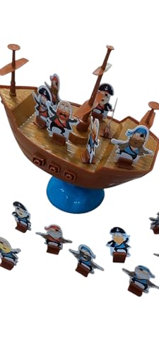 Generic - Pirate Boat Balance Game with Wooden Ship and Character Pieces, Kids Educational Toy Set