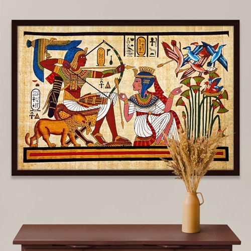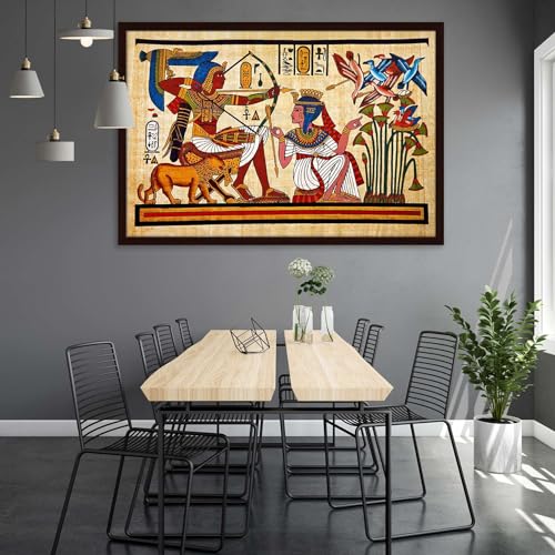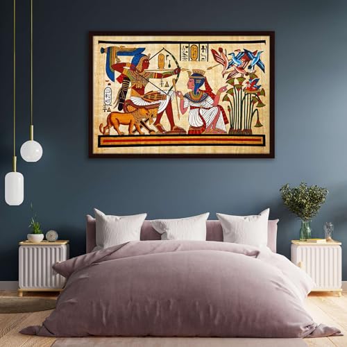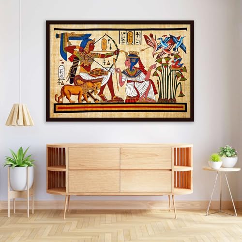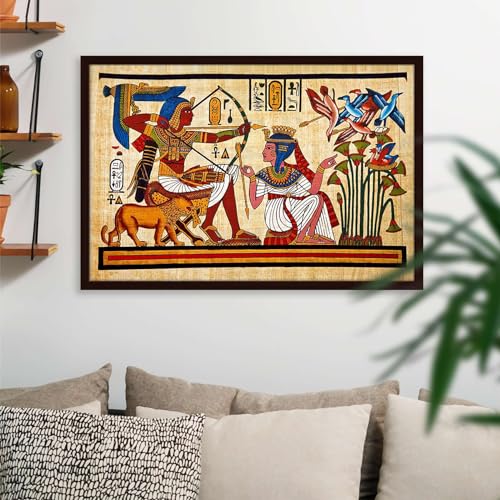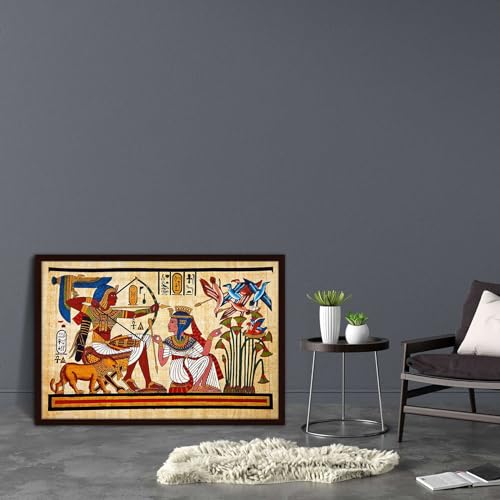 Pitaara Box - Pitaara Box Antique Egyptian Papyrus & Hieroglyph Canvas Painting Dark Brown Synthetic Frame 26.5 x 18 inch (67 x 46 cms)