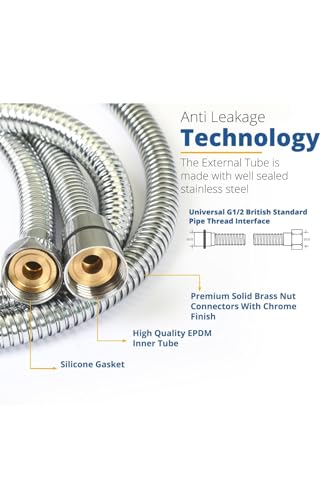 - ✅خرطوم دش عالي الأداء مقاس 1.5 متر: مصنوع من الستانلس ستيل من الدرجة الأولى مع تلميع بالكروم-هيكل صلب:مقاومة للضغط العالي ودرجة الحرارة.