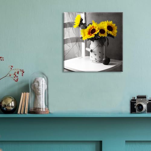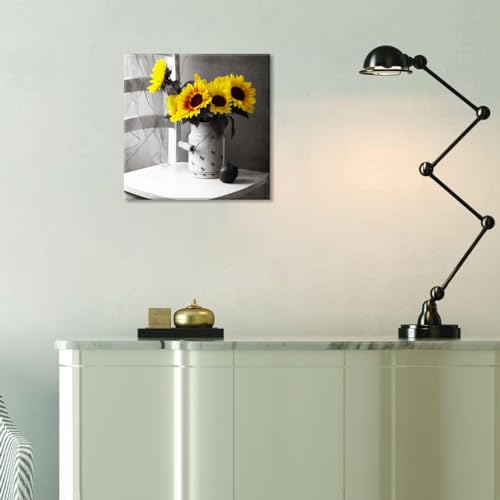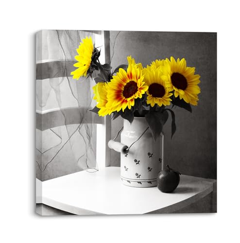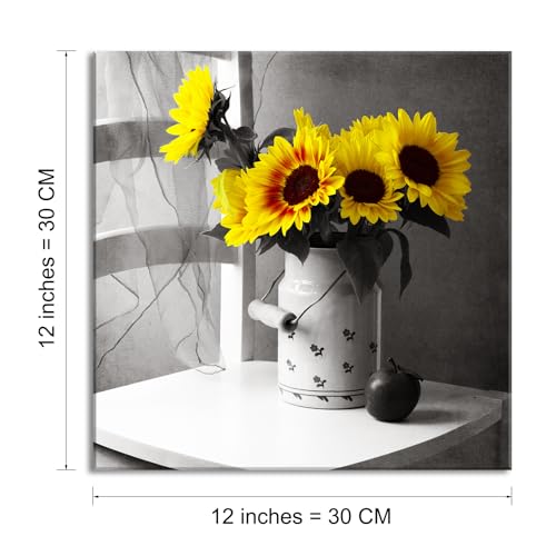 Piy Painting - PIY PAINTING 1 Part Yellow Sunflower Paintings on Canvas 30 x 30 cm Flower Paintings Modern Wall Decoration for Kitchen Bedroom Office Yoga Room with Inner Frame