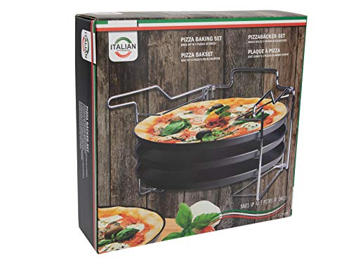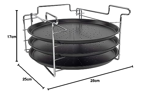 - Set consists of a frame and 3 pizza trays