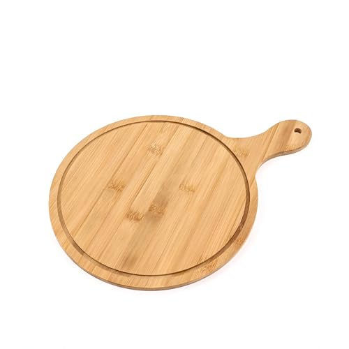 - This versatile bamboo pizza tray is not just for pizzas; it can also serve as a beautiful cutting board or chopping block for fruits, vegetables, and cheeses. Its multifunctional design makes it an essential kitchen tool, providing convenience and style in one package. Additionally, the tray is equipped with a convenient hanging hole for easy storage, ensuring that it remains accessible and organized in your kitchen.