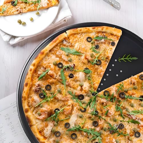- Designed with functional dimensions of 12.5 inches in diameter and 1 inch in height, this pan is suitable for daily professional use or homemade pizza recipes, and it’s compatible with ovens, freezers, and dishwashers for versatile kitchen convenience.