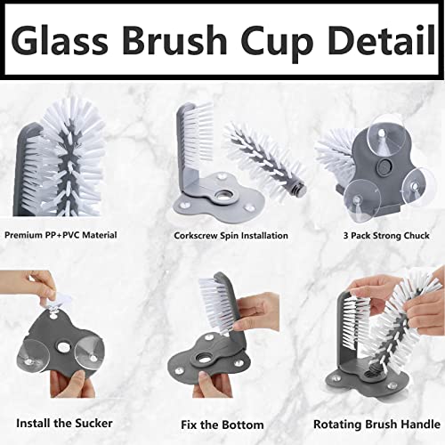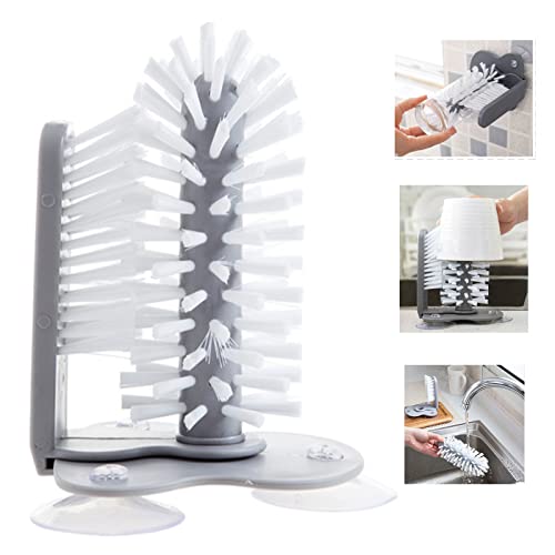 - Base with Suction Cups: The brush base has three large suction cups, the suction cup holder firmly attached to the bottom of the wall or sink, just slide the glassware between the two sets of bristles, easy to use and clean.