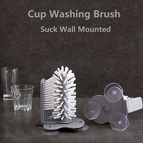 PKHOUHYI - Water Cup Cleaning Brush Water Bottle Cleaning Brush Double-Sided Brush red Wine Glass Cleaning Brush with Suction Cup Base Glass Bottle Cup Cleaning Suitable for bar Kitchen Sink