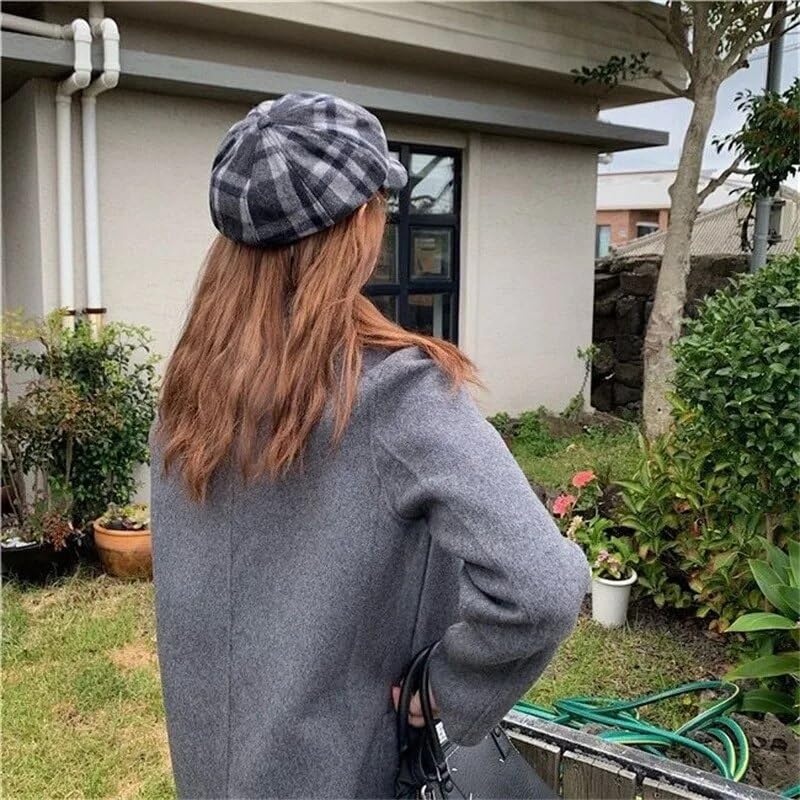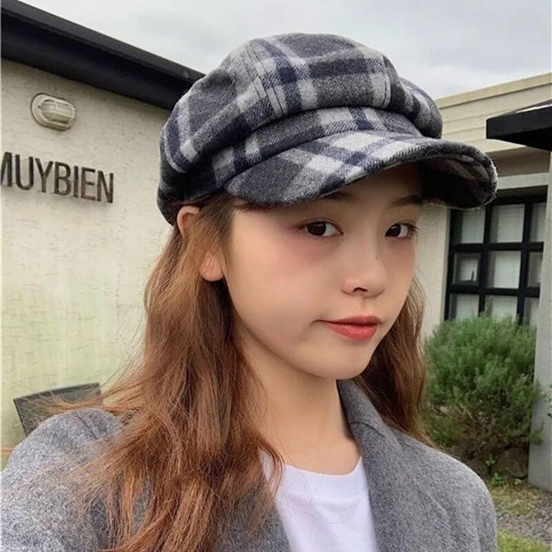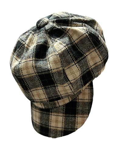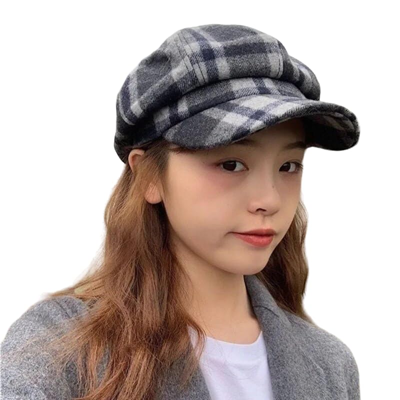 Generic - قبعة نيوزبوي منقوشة للنساء، رمادي واسود، مقاس واحد