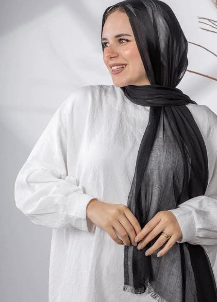Generic - Plain Linen Gauze Scarf with One Line Pattern - Comfortable and Cool Head Scarf - Cotton Hijab for Women