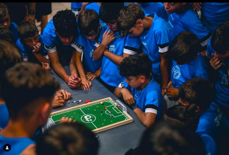 - 💎HOW TO PLAY: Small wooden table football, to be played on any table or on the ground itself, where the goal is to score in the opponent's goal by hitting the ball with your finger. Each opponent has a shot, and so on. When scoring a goal, the opponent must remove/remove one of his eleven "sticks" from the board. Who finishes the sticks LOSE!
