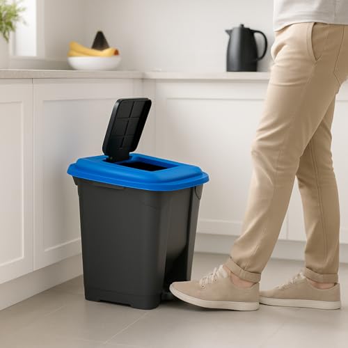 Generic - PLANET Garbage Container Set with Snap-On Lids – Durable Plastic Bins for Waste Sorting & Recycling, Home/Office 30 Liter (Blue)