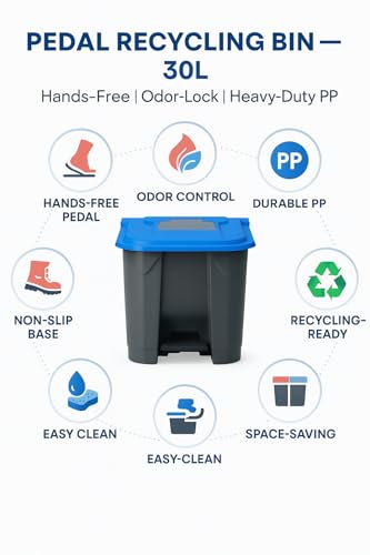 • 4-Color Sorting System: Blue, Yellow, Red, and Black lids make recycling and general-waste separation clear and effortless in homes, offices, schools, and workshops.