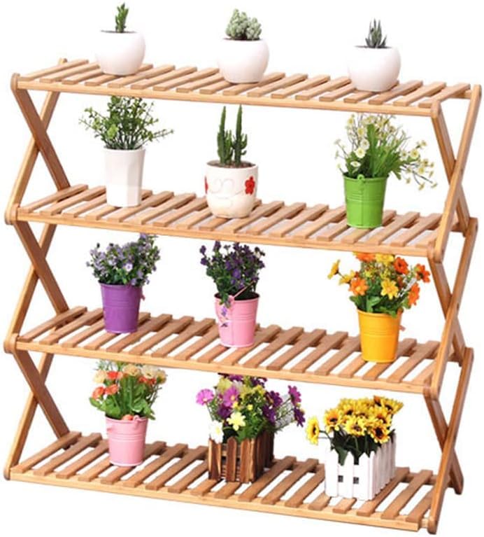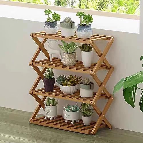 BOIU - Plant Stand Indoor Outdoor, Tall Plant Shelf Indoor Plant Stand Corner Flower Shelves Multiple Plants Rack Holder Table Organizer Display for Patio Balcony Garden (Wood 4 Tier)