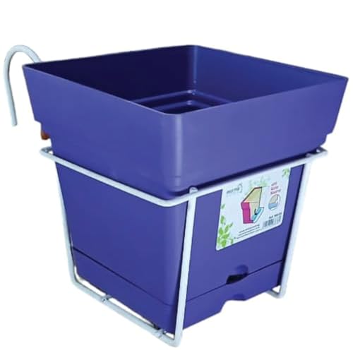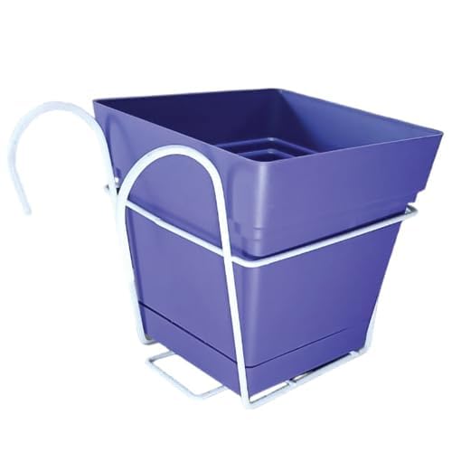 Generic - Planter Pot - Square Chalet 18cm - Polypropylene Treated for Color Stability and Breakage Resistance - Durable Metal Stand Electrostatic Coated White for Hanging - Color (Dark Purple)