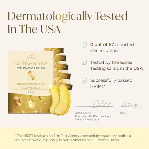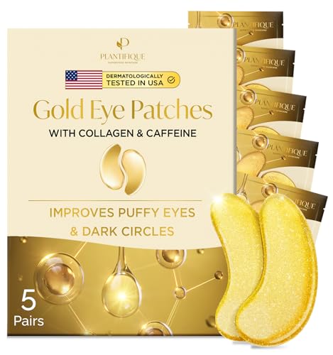 PLANTIFIQUE - Plantifique Under Eye Masks Anti Wrinkle 5 Pairs Under Eye Patches Gold Eye Masks Skincare for Dark Circles and Puffiness Puffy Eyes Under Eye Mask Skincare Gel Patches for Women & Men