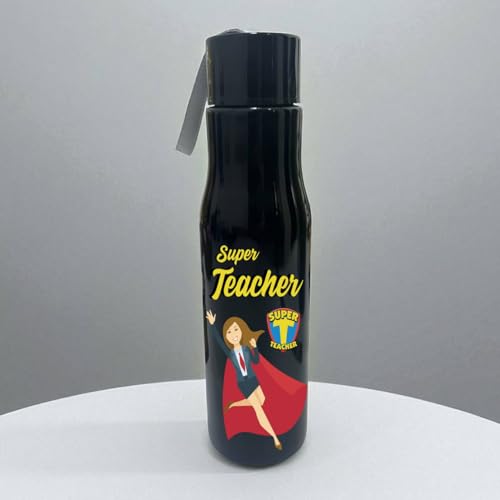 Generic - Plastic Bottle With holder- Black- 500 ML- Durable Waterproof - One sided printing- Teacher design- Teacher gift- Super teacher - We print