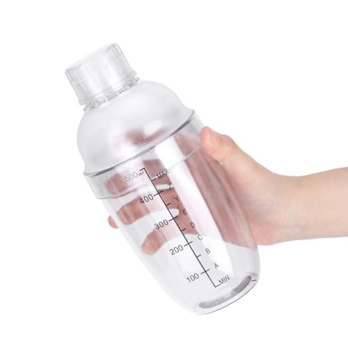 Jwthee - Plastic Cocktail Shaker, Clear Cocktail Shaker with Measurements, Coffee Shakers Drink Shakers Bottle Hand Drink Wine Mixer Bottle with Scale and Strainer Top (530ml)