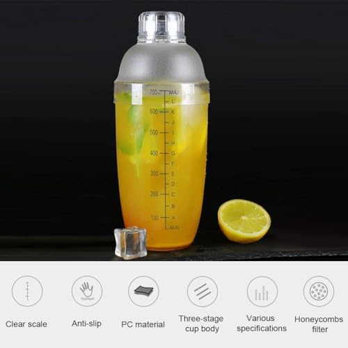 - ENHANCED EFFICIENCY: Clear scale markings and standard capacity of the clear cocktail shaker cup help you prepare drinks with precisionss, improving efficiency and overall enjoyment. The clear body of the clear cocktail shaker bottle designed that can display your colorful concoctions as you're shaking them up