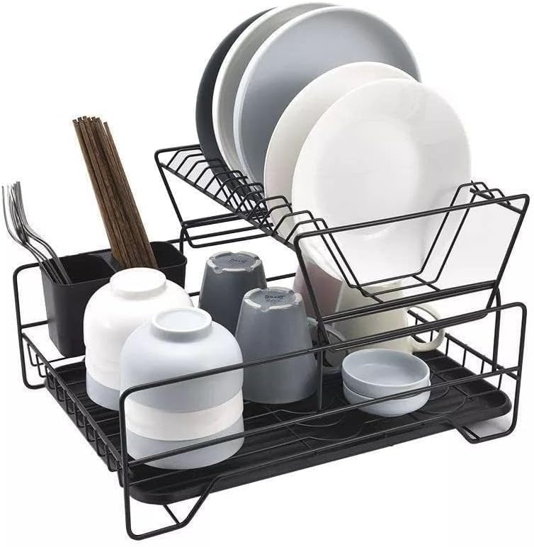 generic - Plastic Dish Rack with Base, Sink Strainer for Kitchen, Dishes, Spoons, Cups Organizer (Grey)
