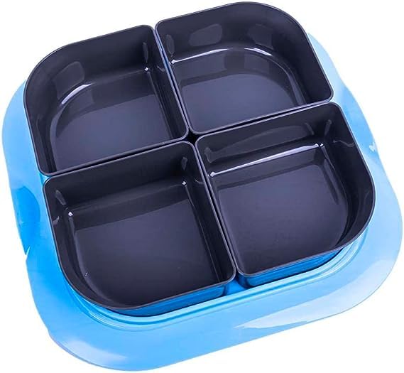 Generic - طقم علب تخزين طعام بلاستيك مقسمة باربع فتحات واغطية للوجبات الخفيفة 6 قطع - متعدد الالوان