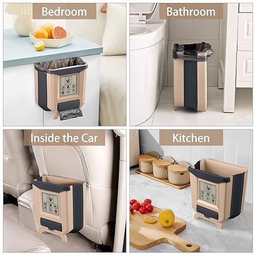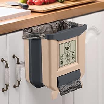 - SPACE-SAVING DESIGN: Foldable collapsible trash bin that hooks over cabinet doors, drawers, or countertops to maximise kitchen space without taking up floor area