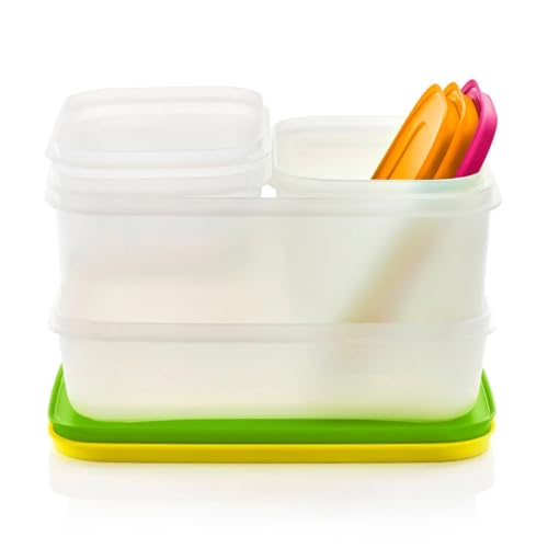 - حاويات محكمة الإغلاق: تتضمن هذه المجموعة خمس حاويات بلاستيكية متينة مع أغطية محكمة الإغلاق للحفاظ على طعامك طازجًا ومنع التلف.