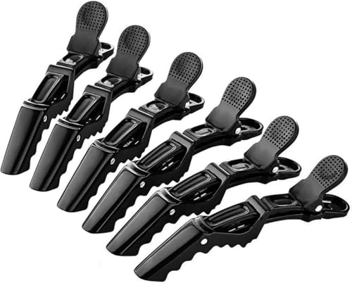 Generic - Plastic Hair Clips, Set of 6, Black, Purple, Red, Blue, Yellow (Black)
