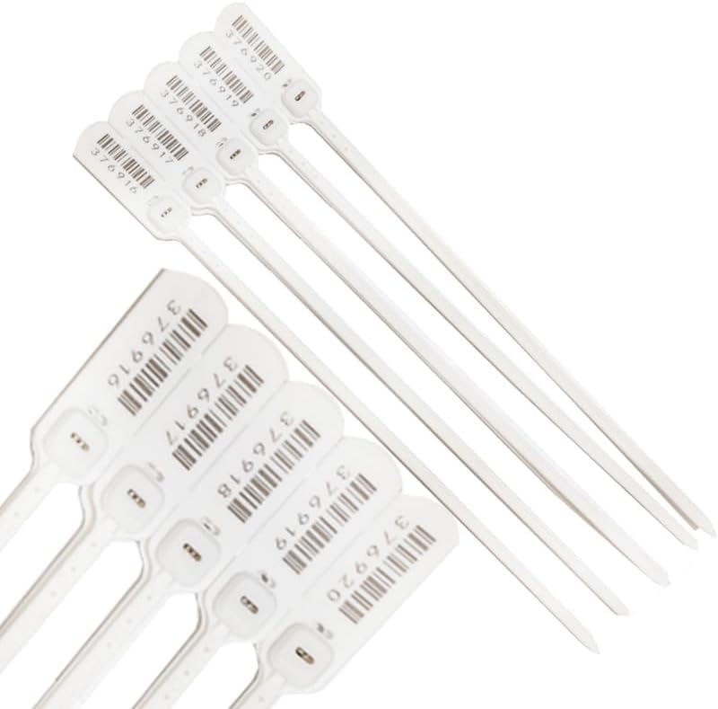 Generic - Plastic Heavy Duty Numbered Safety Ties,Sequential Padded Seals,for Trucks, Trailers, Bags, Boxes and More (White, Length 40cm, 5 Count) - by Rana Store