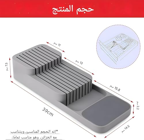 - تم تصميم منظم السكاكين للأدراج مع وضع توفير المساحة في الاعتبار، مما يجعله ملحقًا مثاليًا للمطابخ حيث تكون المساحة ممتازة. يسمح تصميمه الصغير بالملاءمة بشكل مريح في معظم أدراج المطبخ، مما يزيد بشكل فعال من مساحة الدرج المتاحة مع ضمان تنظيم سكاكينك بشكل أنيق. لم يعد هناك ما يدعو للقلق بشأن البحث في مجموعة مختلطة من أدوات تناول الطعام في المطبخ للعثور على السكين المناسب. يعطي هذا المنتج الأولوية للتنظيم والراحة، مما يعزز تجربة الطبخ الخاصة بك