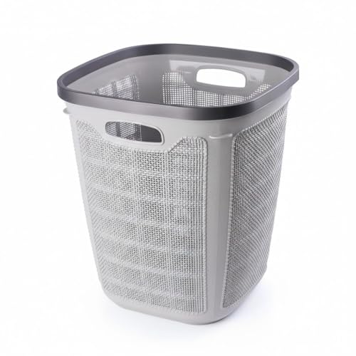Generic - Plastic Laundry Basket Jute Design, Grey, 60L, Perforated Design with Handles