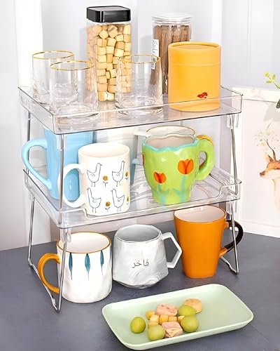Generic - ارفف تنظيم بلاستيكية - تصميم شفاف قابل للطي مع دعم معدني لتخزين فعال في المطبخ والحمام (قطعة 2)