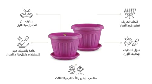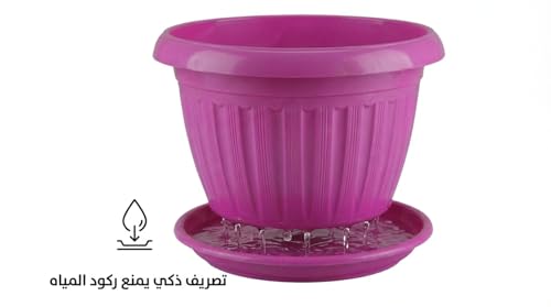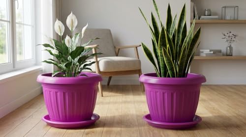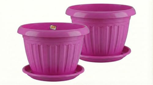Generic - Plastic Planter Pots Set, 2 Pieces with 2 Watering Dishes, Durable and Resistant for Home Plants (Fuchsia, 25cm)