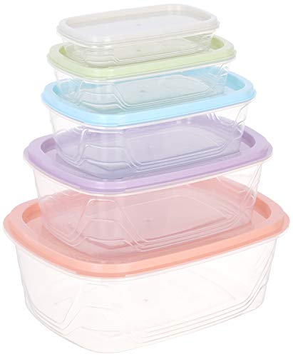 Other - Plastic Rectangular Food Storage Container Set, 5 Pieces - Multi Color