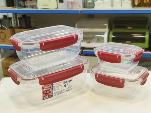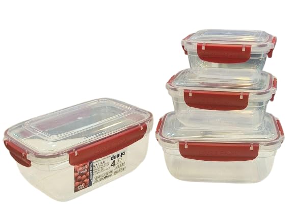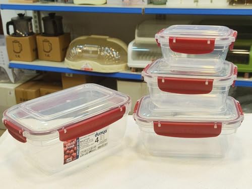 Generic - Plastic Rectangular Reusable Food Storage Container Set Of 4 Pieces - Clear With Maroon Lid