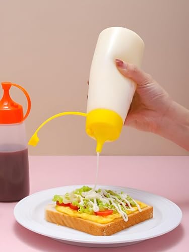 Generic - زجاجات صوص بلاستيك قابلة لإعادة التعبئة مثالية للكاتشب والمايونيز سهلة الاستخدام ومناسبة للمطابخ والمطاعم وعربات الطعام، مجموعة من قطعتين