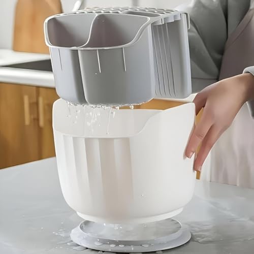 - Durable plastic strainer and cutlery holder featuring a full 360° rotating design for effortless access and neat organization.